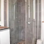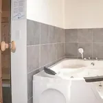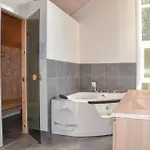Cet établissement Holiday Home Dalen Oksbol II comprend une salle de bains avec un bain à remous et une douche. Un sèche-cheveux sont fournis pour le confort des clients.